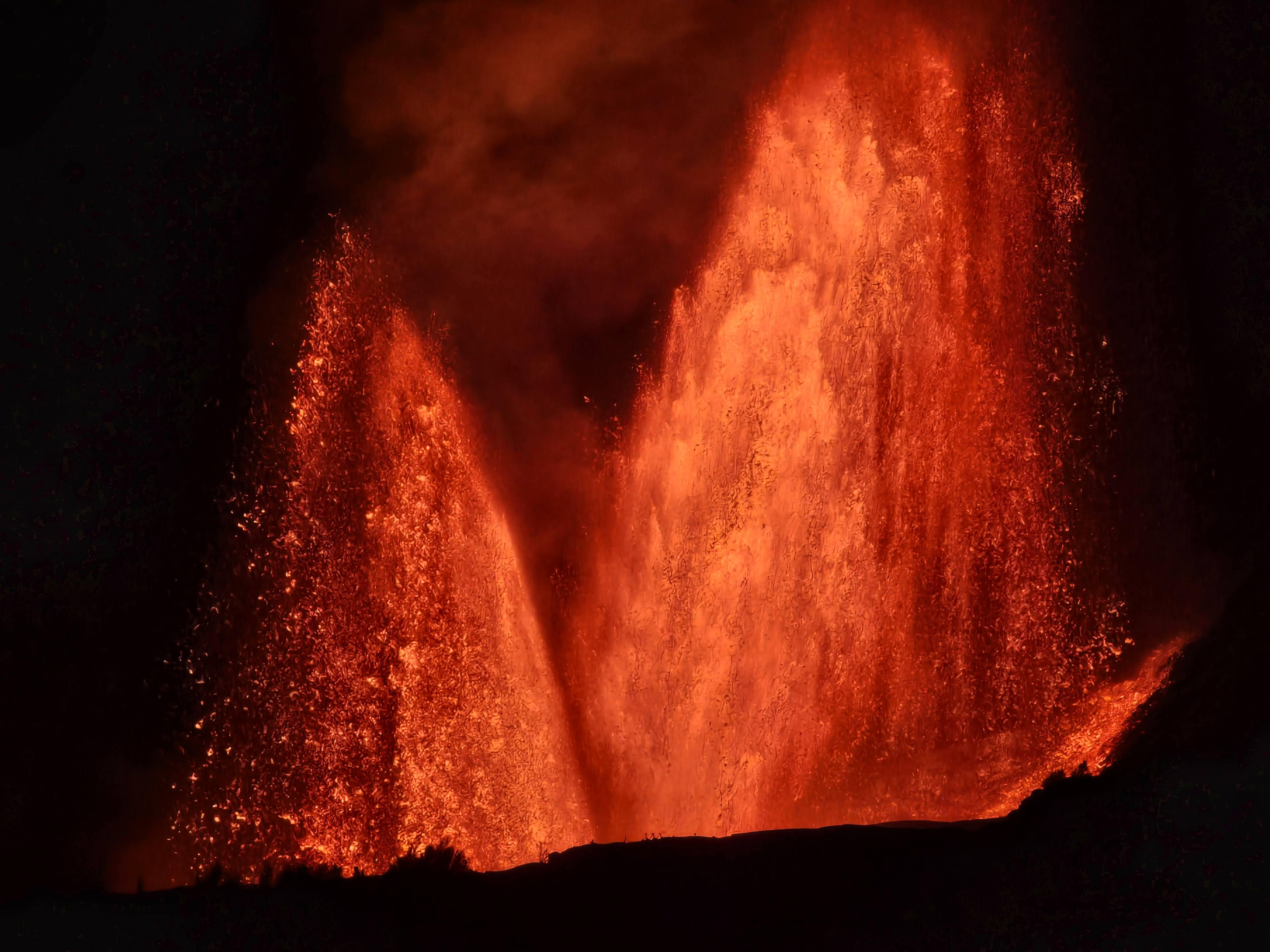 19. September 2021: Spanien, Kanarische Inseln, La Palma, Cumbre Vieja, 2'426 m. Nachdem die seismischen Aktivitäten in den vergangenen Tagen deutlich zugenommen haben, ist am Sonntagnachmittag gegen 15 Uhr, wie von Vulkanologen erwartet, an der Gebirgskette des Cumbre Vieja zu mehreren Vulkaneruptionen gekommen. In der Gegend von El Paso im Süden der Insel wurde Lava in die Luft geschleudert und es stieg Rauch auf. Ein Riss mit zunächst vier Öffnungen hatte sich nach aktuellen Medienberichten aufgetan. Inzwischen wurde auch ein fünfter Riss festgestellt. Der entstandene Lavastrom näherte sich bereits bedrohlich einigen Häusern, die am nahegelegenen Abhang stehen. Laut Presseberichten wanderten noch am Sonntag Touristen in dem Naturschutzgebiet. Wenige Stunden vor dem Ausbruch wurde in der Gegend ein Erdbeben mit der Stärke M 3,8 registriert, nachdem es in den vergangenen Tagen schon mehr als 25.000 leichtere Erdstöße gegeben hatte. Mehr als 300 Bewohner wurden inzwischen evakuiert, militärische Einheiten wurden in die Gegend beordert. Schon seit dem 11. September registrierten Fachleute eine deutliche Häufung kleinerer Beben, deren Herde in einer Tiefe von mehr als 20 Kilometern begannen, aber nach und nach der Erdoberfläche immer näher kamen. Am Dienstag hatten die Behörden deshalb 30.000 Einwohner im Südwesten der Insel aufgefordert, leichtes Gepäck vorzubereiten und die aktuellen Warnhinweise zu verfolgen. Der letzte Ausbruch des Vulkans ereignete sich vom 26. Oktober bis 18. November 1971 in der Gegend des Kraters Teneguja.